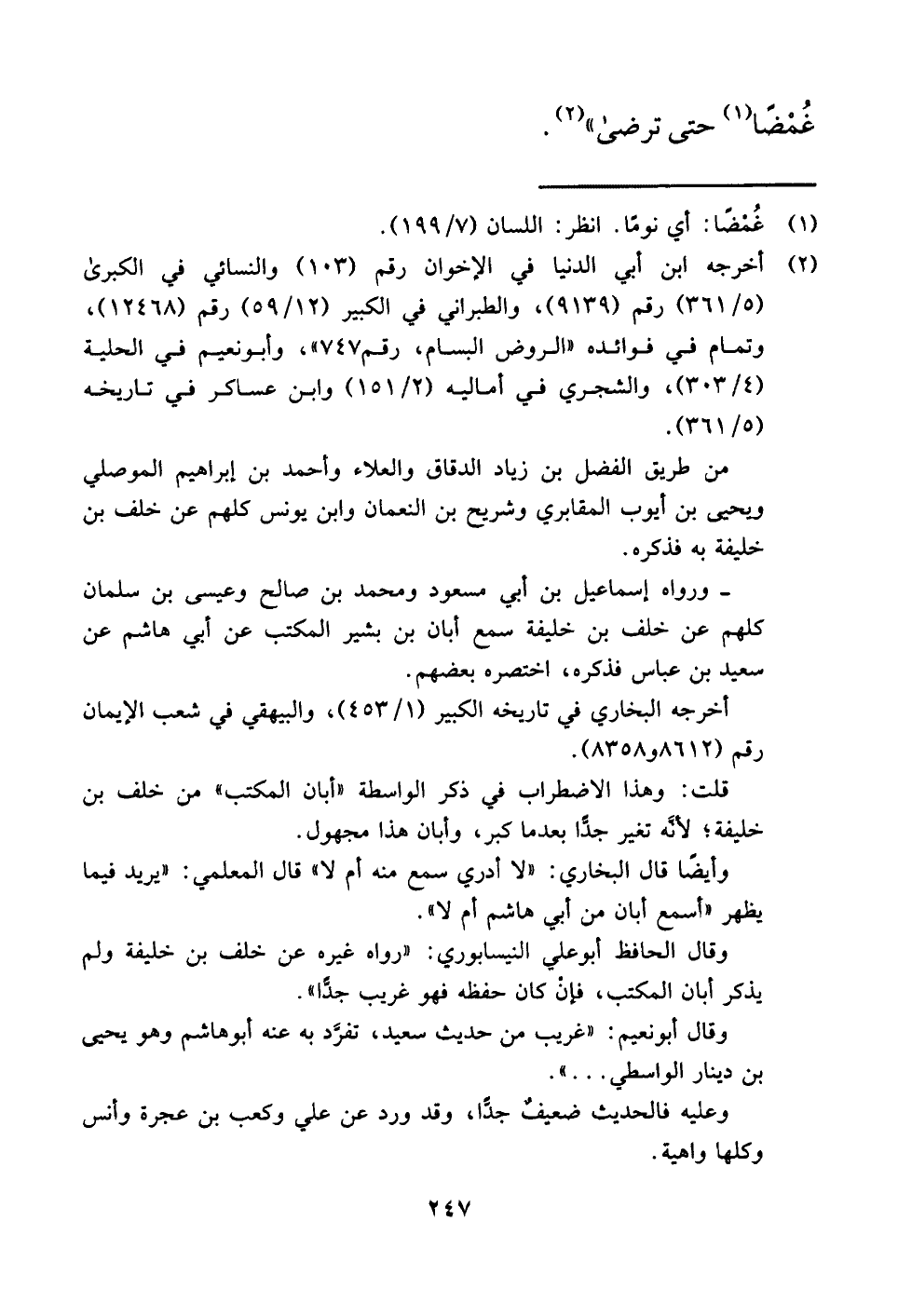 قلت: وهذا الاضطراب في ذكر الواسطة "أبان المكتب" من خلف بن خليفة؛ لأنَّه تغير جدًّا بعدما كبر، وأبان هذا مجهول.