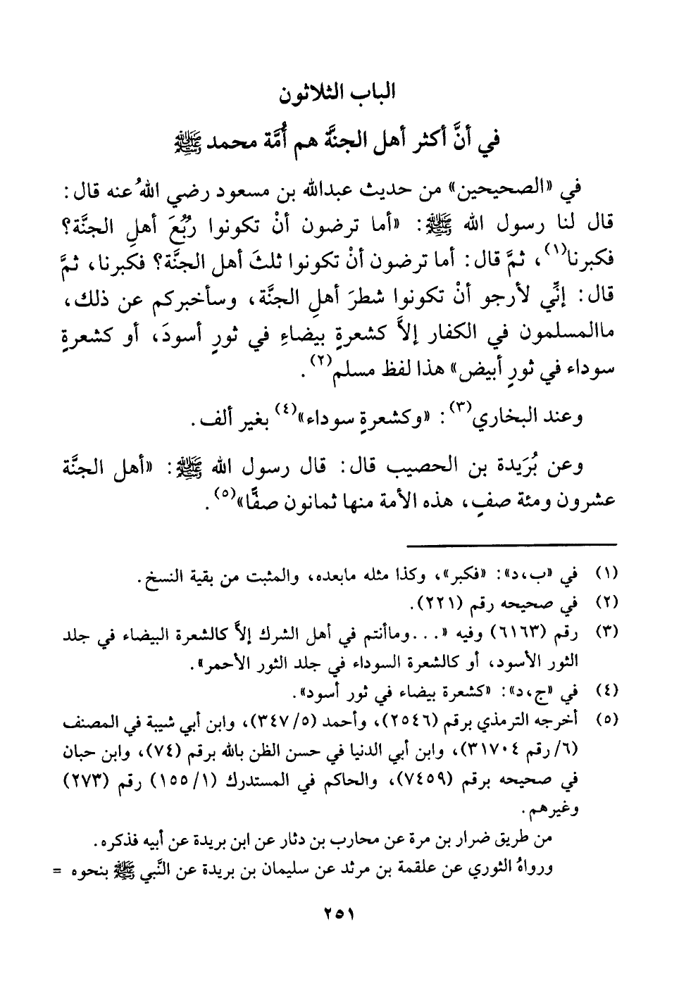 الباب الثلاثون في أنَّ أكثر أهل الجنَّة هم أُمَّة محمد -صلى اللَّه عليه وسلم-