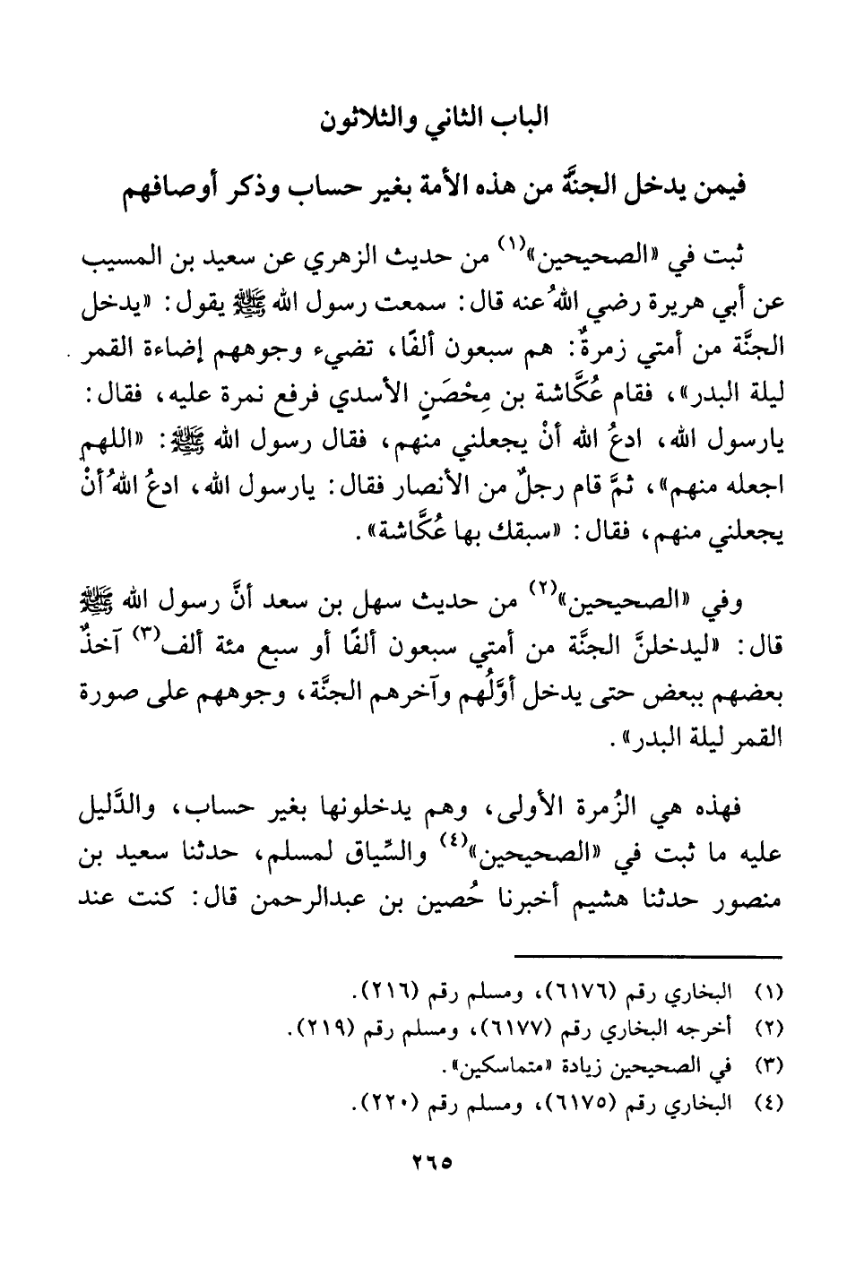 الباب الثاني والثلاثون فيمن يدخل الجنَّة من هذه الأمة بغير حساب وذكر أوصافهم