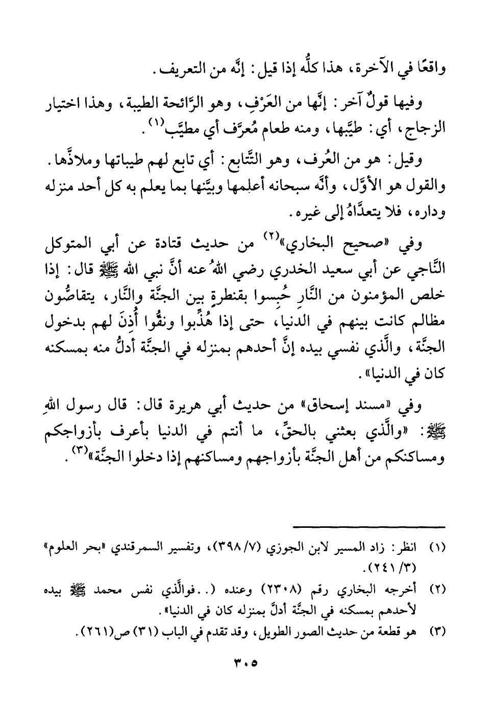 وقيل: هو من العُرف، وهو التَّتابع: أي تابع لهم طيباتها وملاذَّها. والقول هو الأوَّل، وأنَّه سبحانه أعلمها وبيَّنها بما يعلم به كل أحد منزله وداره، فلا يتعدَّاهُ إلى غيره.