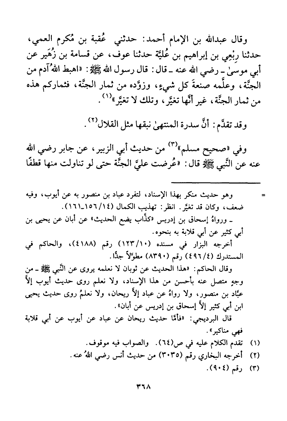 وقال عبد اللَّه بن الإمام أحمد: حدثني عُقبة بن مُكرم العمي، حدثنا رِبْعِي بن إبراهيم بن عُليَّة حدثنا عوف، عن قسامة بن زُهَير عن أبي موسى -رضي اللَّه عنه- قال: قال رسول اللَّه -صلى اللَّه عليه وسلم-: "اهبط اللَّهُ آدم من الجنَّة، وعلَّمه صنعةَ كل شيءٍ، وزوَّده من ثمار الجنَّة، فثماركم هذه من ثمار الجنَّة، غير أنَّها تغيَّر، وتلك لا تغيَّر" (¬١) .