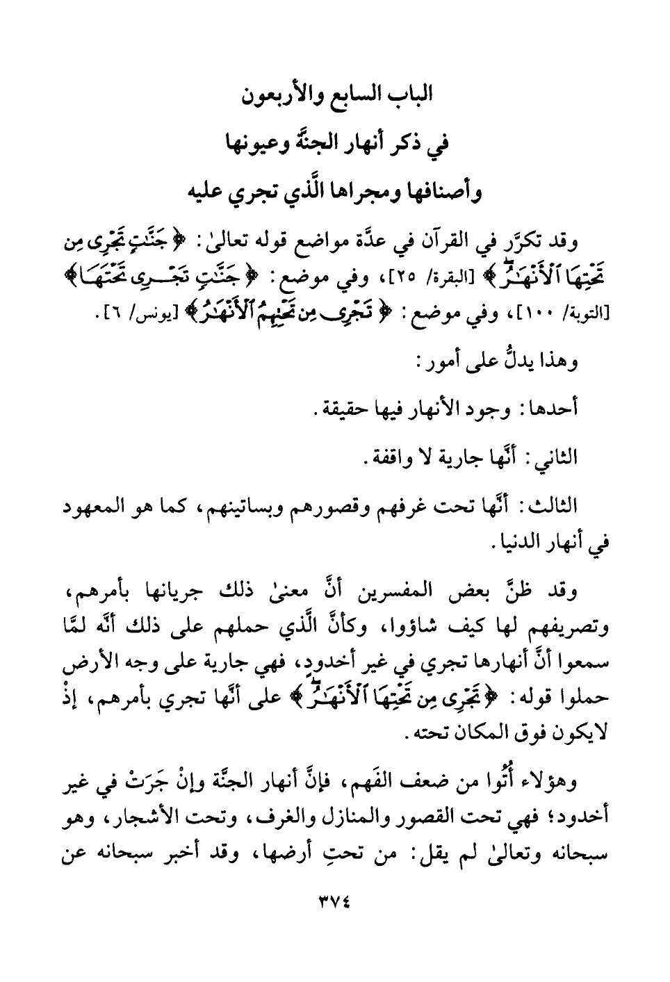 الباب السابع والأربعون في ذكر أنهار الجنَّة وعيونها وأصنافها ومجراها الَّذي تجري عليه