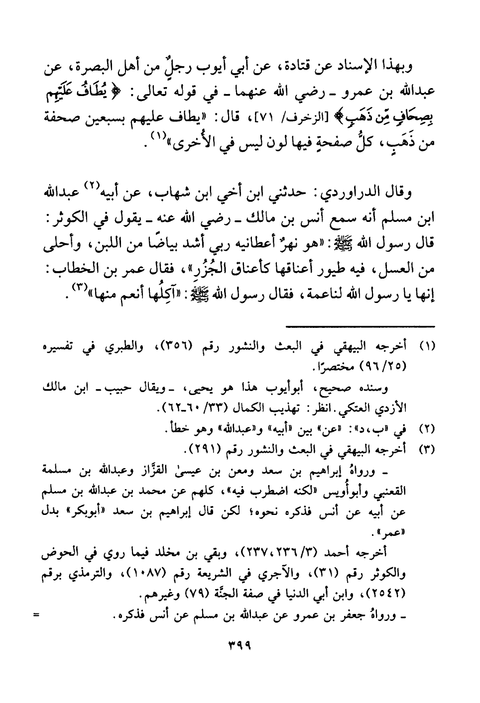 (¬٣) أخرجه البيهقي في البعث والنشور رقم (٢٩١).