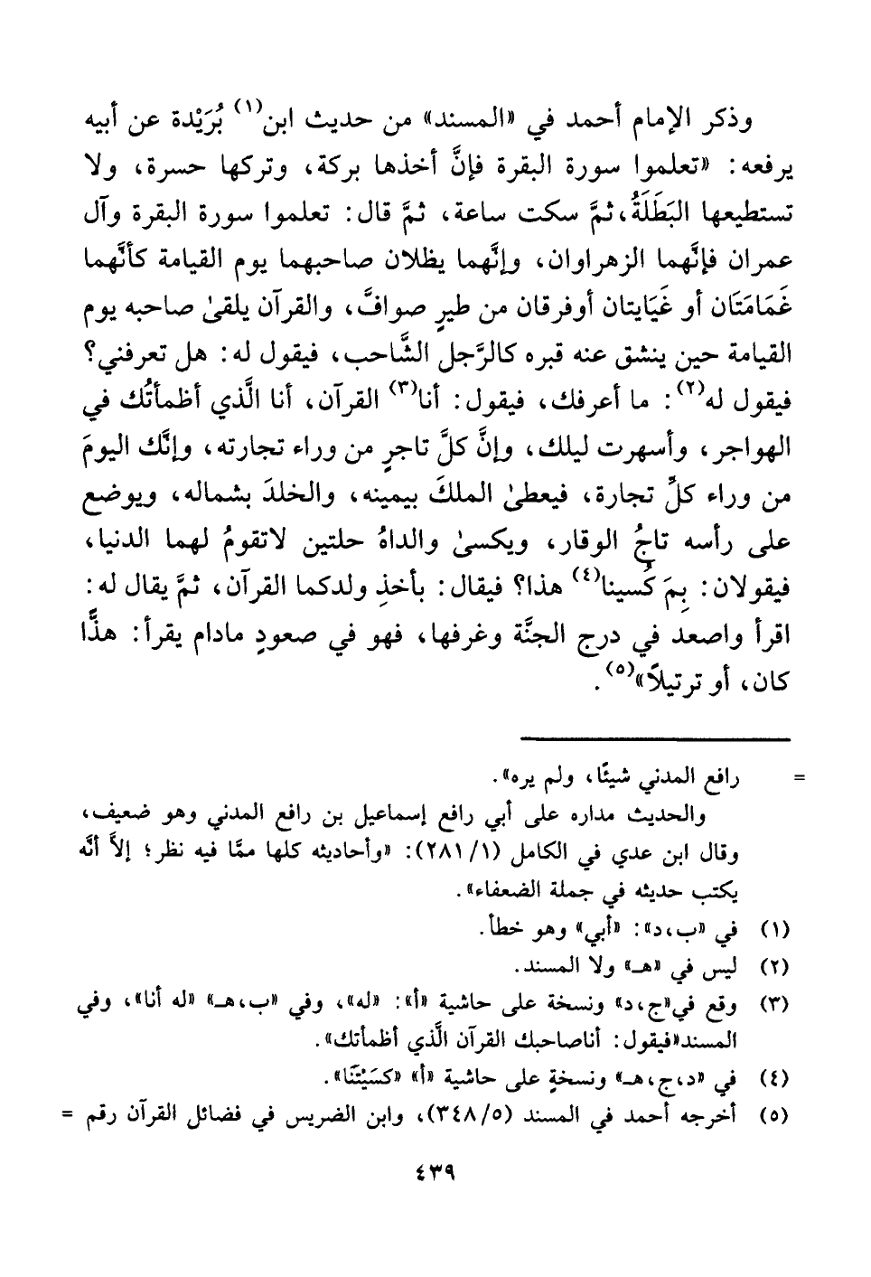 (¬٥) أخرجه أحمد في المسند (٥/ ٣٤٨)، وابن الضريس في فضائل القرآن رقم =