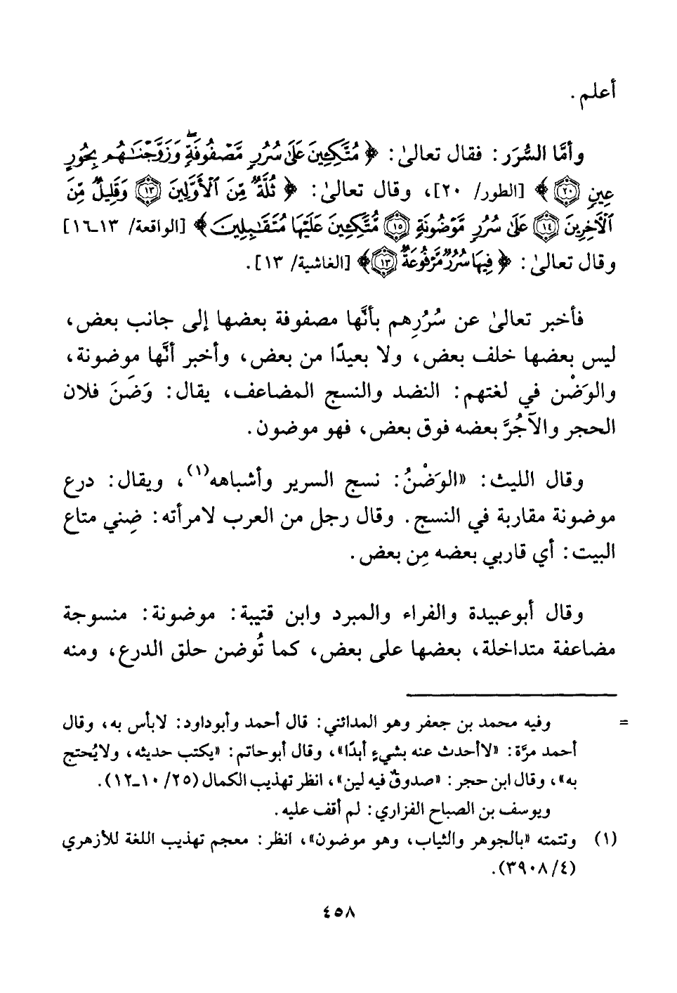 (¬١) وتتمته "بالجوهر والثياب، وهو موضون"، انظر: معجم تهذيب اللغة للأزهري (٤/ ٣٩٠٨).