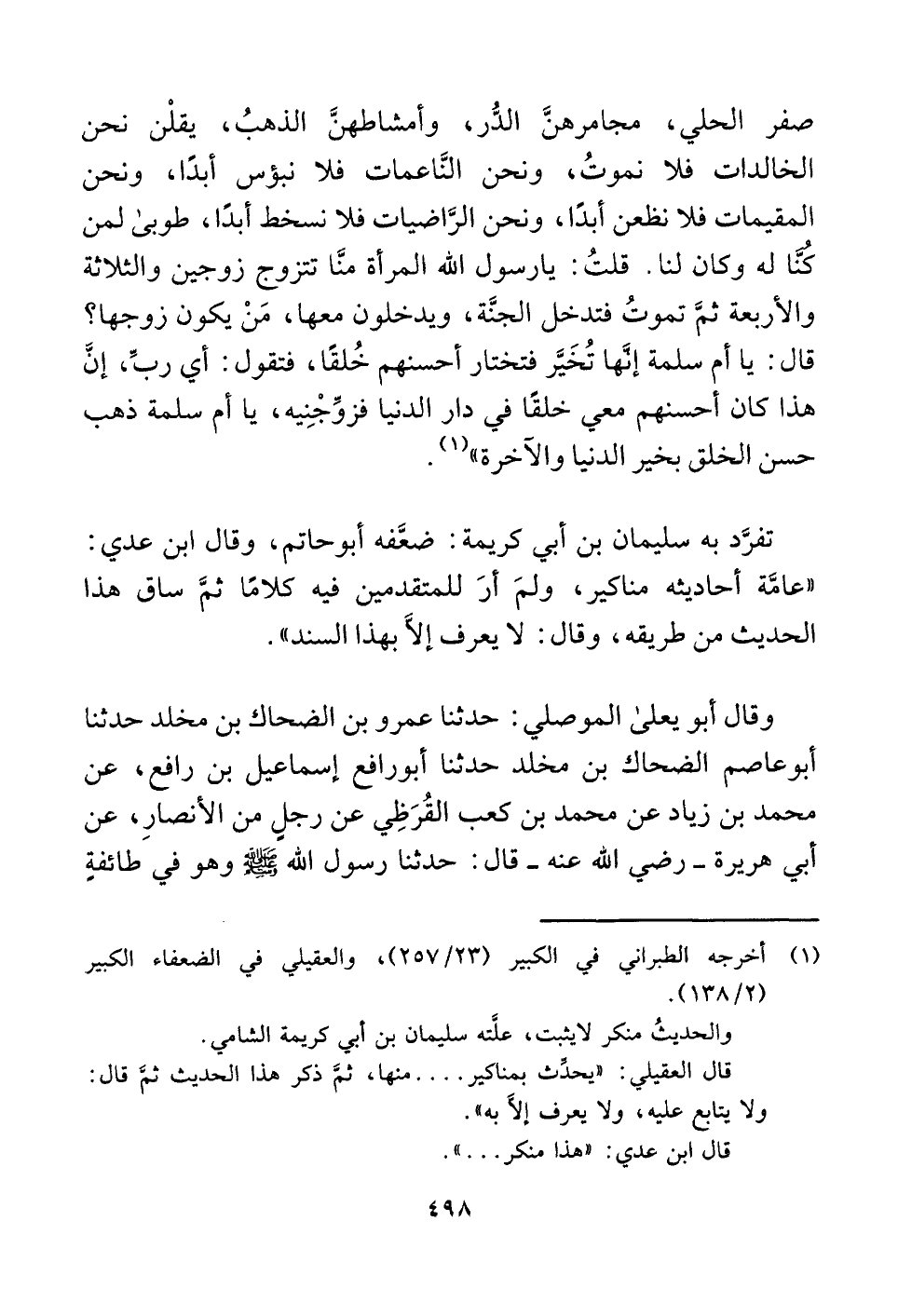 (¬١) أخرجه الطبراني في الكبير (٢٣/ ٢٥٧)، والعقيلي في الضعفاء الكبير (٢/ ١٣٨).