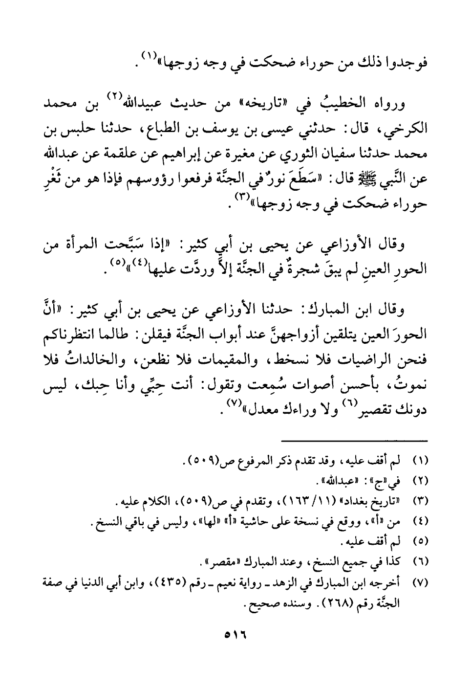 (¬٧) أخرجه ابن المبارك في الزهد -رواية نعيم- رقم (٤٣٥)، وابن أبي الدنيا في صفة الجنَّة رقم (٢٦٨). وسنده صحيح.