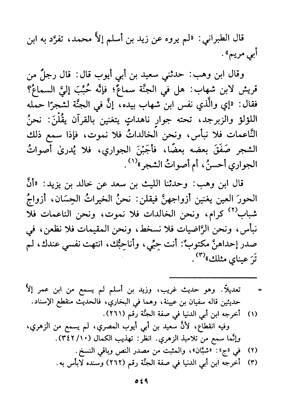 (¬٣) أخرجه ابن أبي الدنيا في صفة الجنَّة رقم (٢٦٢) وسنده لا بأس به.