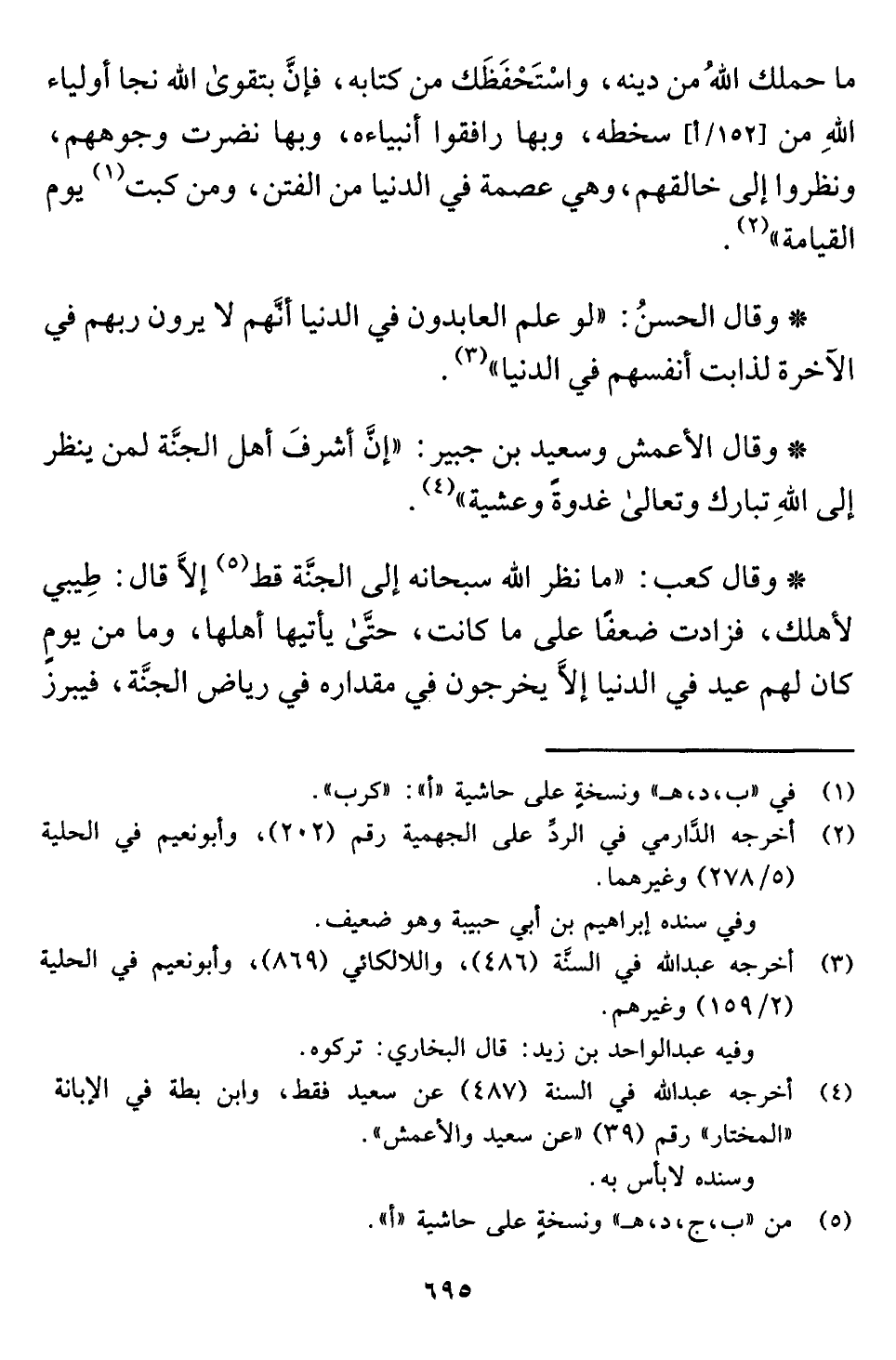 (¬٣) أخرجه عبد اللَّه في السنَّة (٤٨٦)، واللالكائي (٨٦٩)، وأبو نعيم في الحلية (٢/ ١٥٩) وغيرهم.