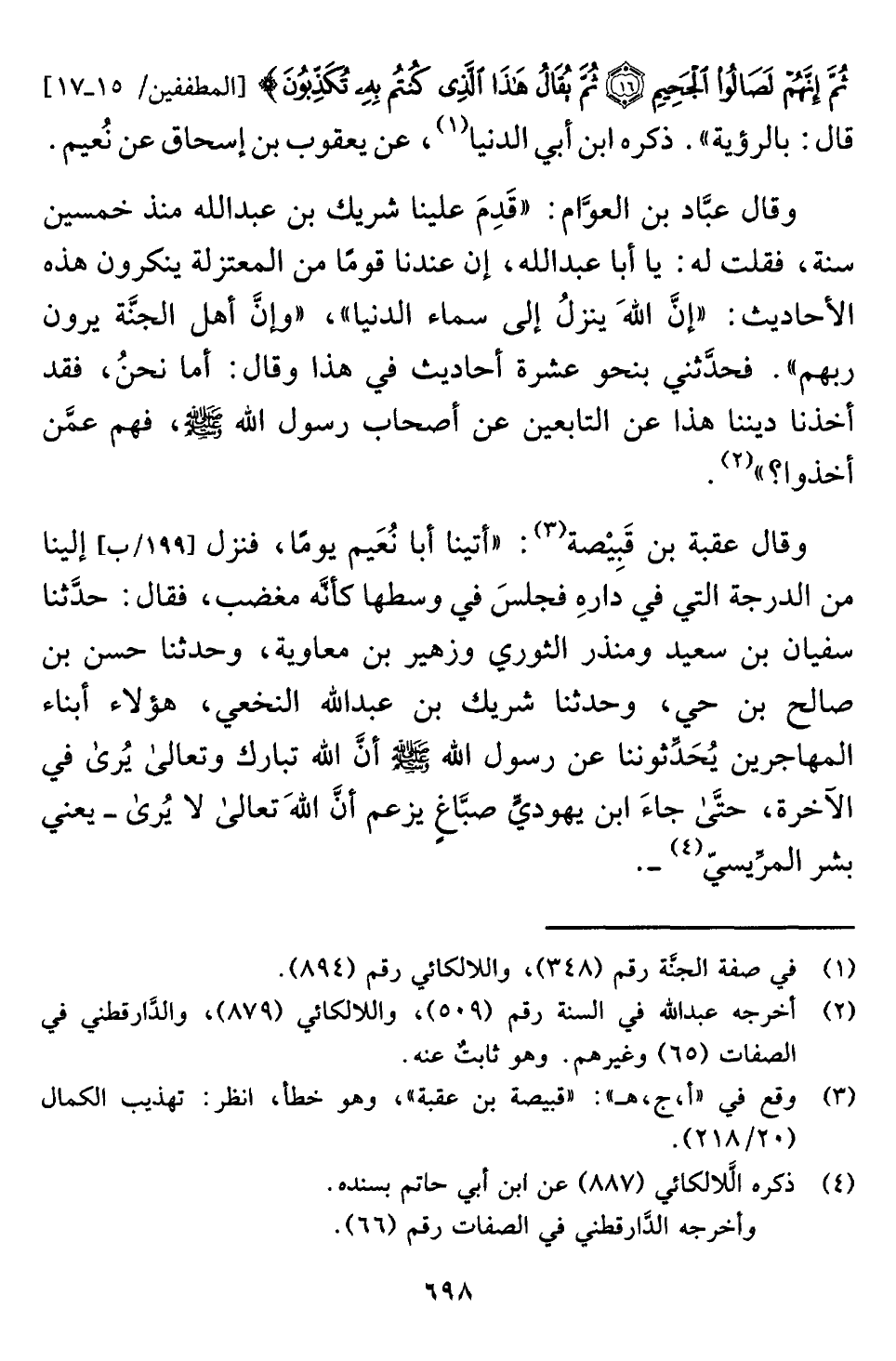 (¬١) في صفة الجنَّة رقم (٣٤٨)، واللالكائي رقم (٨٩٤).
