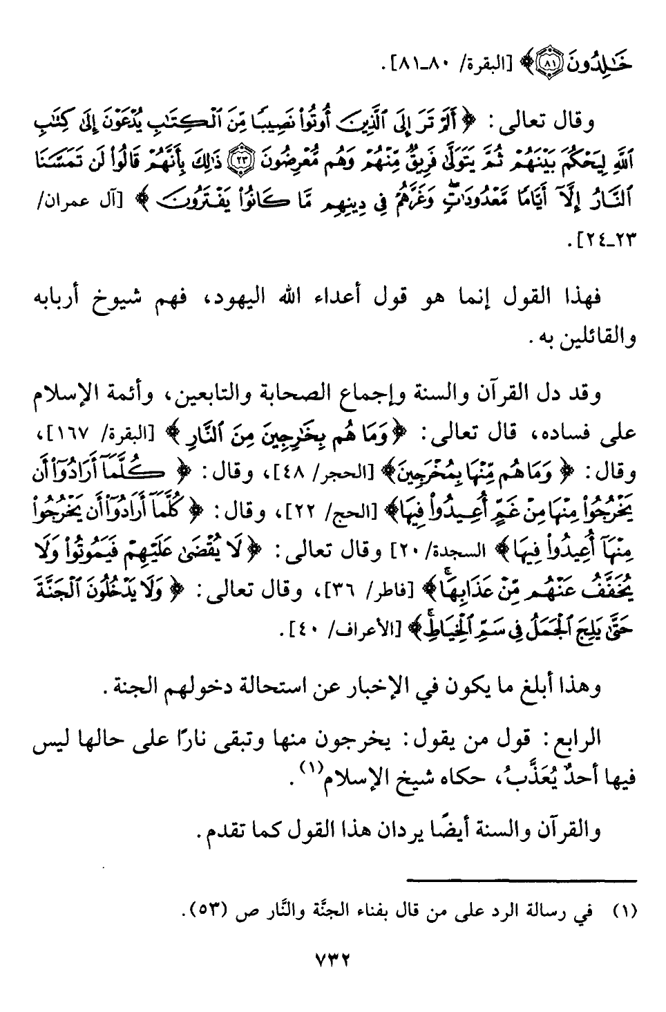 (¬١) في رسالة الرد على من قال بفناء الجنَّة والنَّار ص (٥٣).