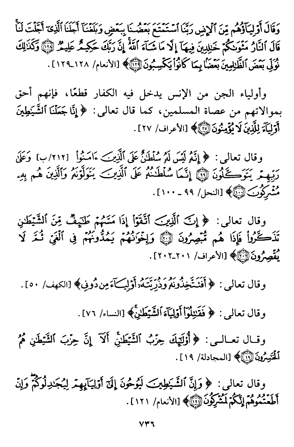وقال تعالى: {إِنَّهُ لَيْسَ لَهُ سُلْطَانٌ عَلَى الَّذِينَ آمَنُوا وَعَلَى رَبِّهِمْ يَتَوَكَّلُونَ (٩٩) إِنَّمَا سُلْطَانُهُ عَلَى الَّذِينَ يَتَوَلَّوْنَهُ وَالَّذِينَ هُمْ بِهِ مُشْرِكُونَ (١٠٠)} [النحل: ٩٩, ١٠٠].