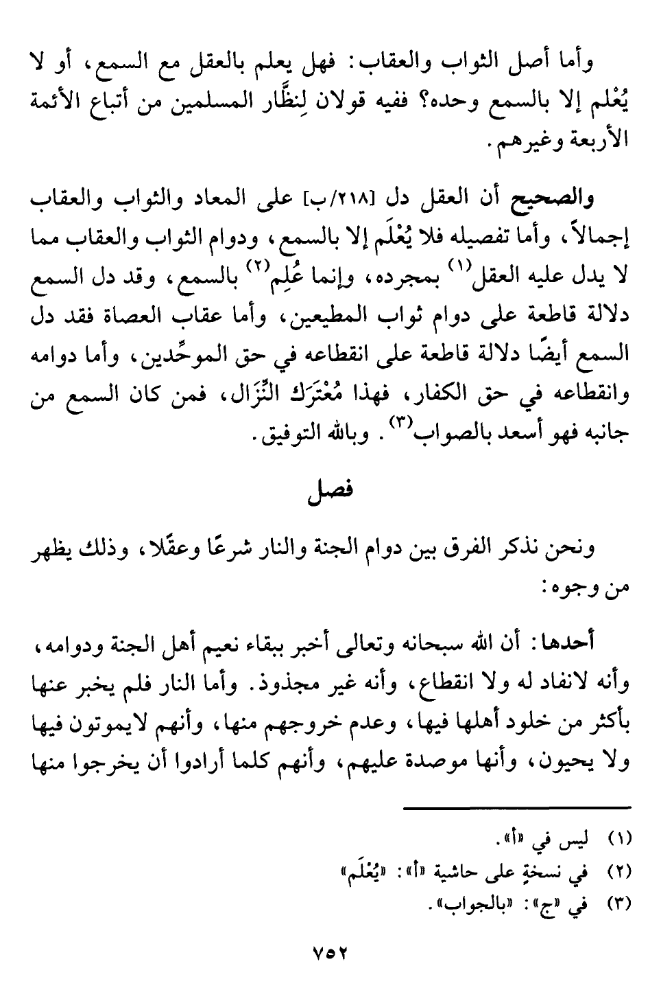 ونحن نذكر الفرق بين دوام الجنة والنار شرعًا وعقلًا، وذلك يظهر من وجوه: