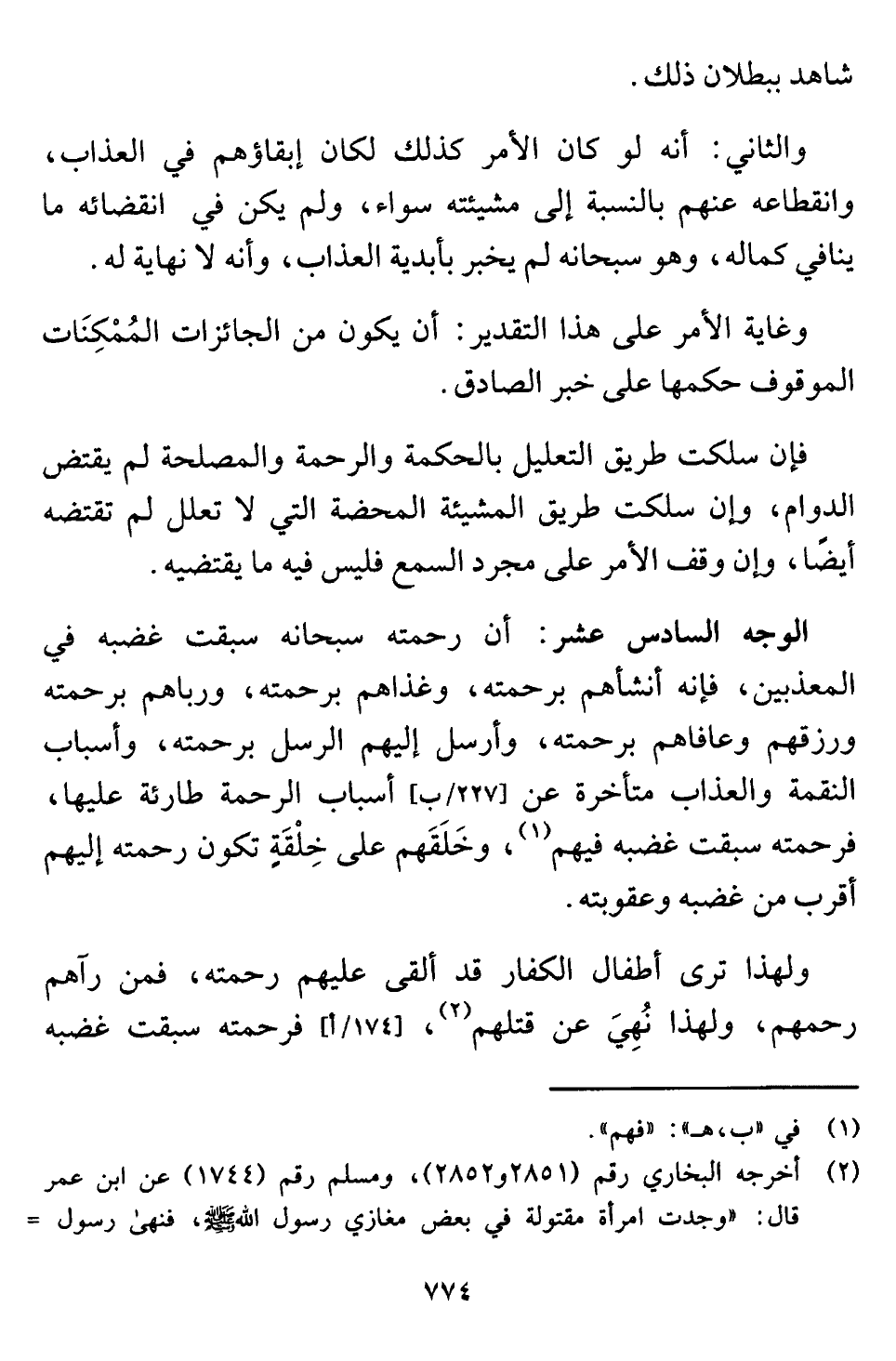 ولهذا ترى أطفال الكفار قد ألقى عليهم رحمته، فمن رآهم رحمهم، ولهذا نُهِيَ عن قتلهم (¬٢) ، فرحمته سبقت غضبه