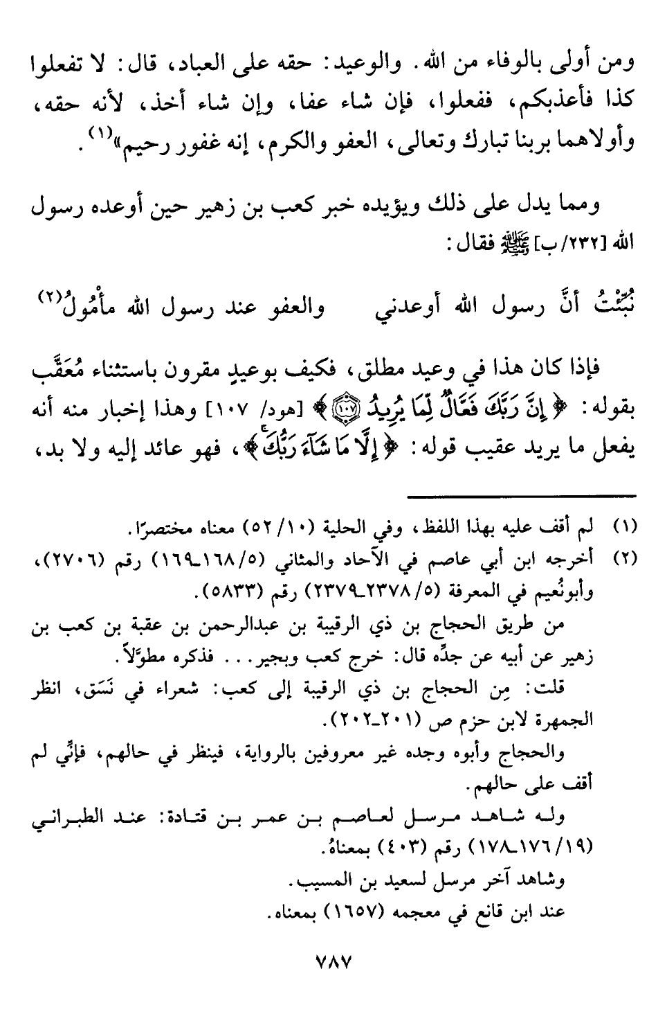 ومما يدل على ذلك ويؤيده خبر كعب بن زهير حين أوعده رسول اللَّه -صلى اللَّه عليه وسلم- فقال: