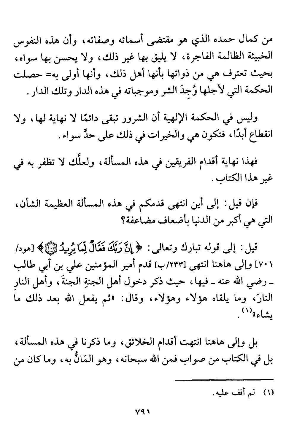 وليس في الحكمة الإلهية أن الشرور تبقى دائمًا لا نهاية لها، ولا انقطاع أبدًا، فتكون هي والخيرات في ذلك على حدٍّ سواء.