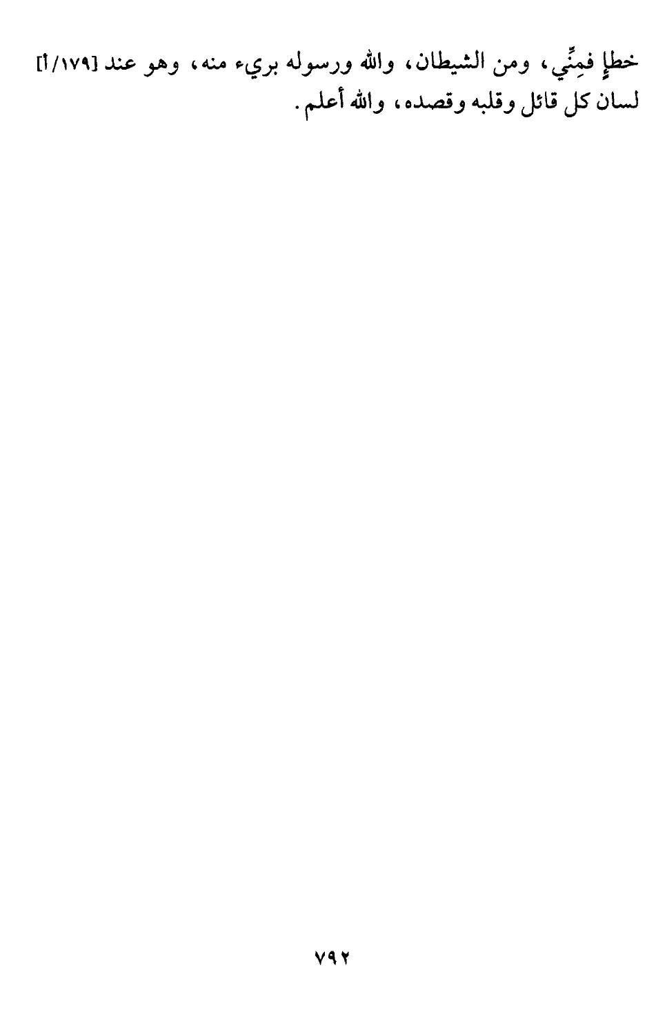 خطإٍ فمِنِّي، ومن الشيطان، واللَّه ورسوله بريء منه، وهو عند لسان كل قائل وقلبه وقصده، واللَّه أعلم.