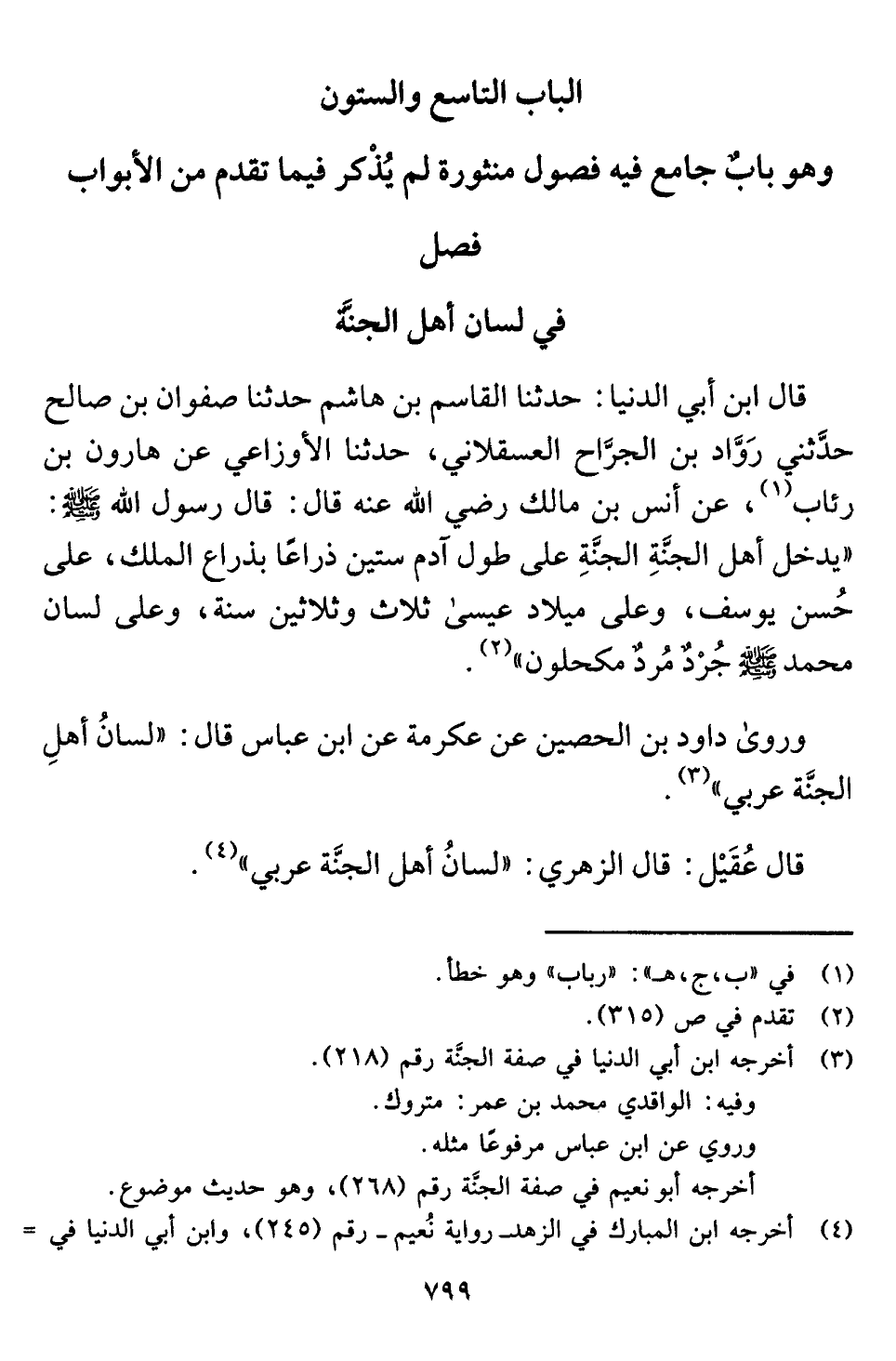 وروى داود بن الحصين عن عكرمة عن ابن عباس قال: "لسانُ أهلِ الجنَّة عربي" (¬٣).