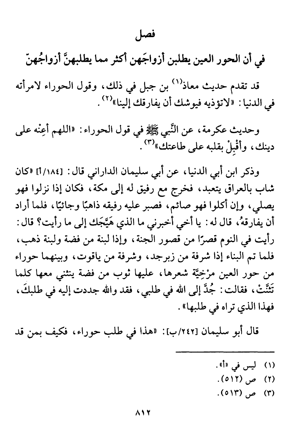 قال أبو سليمان: "هذا في طلب حوراء، فكيف بمن قد