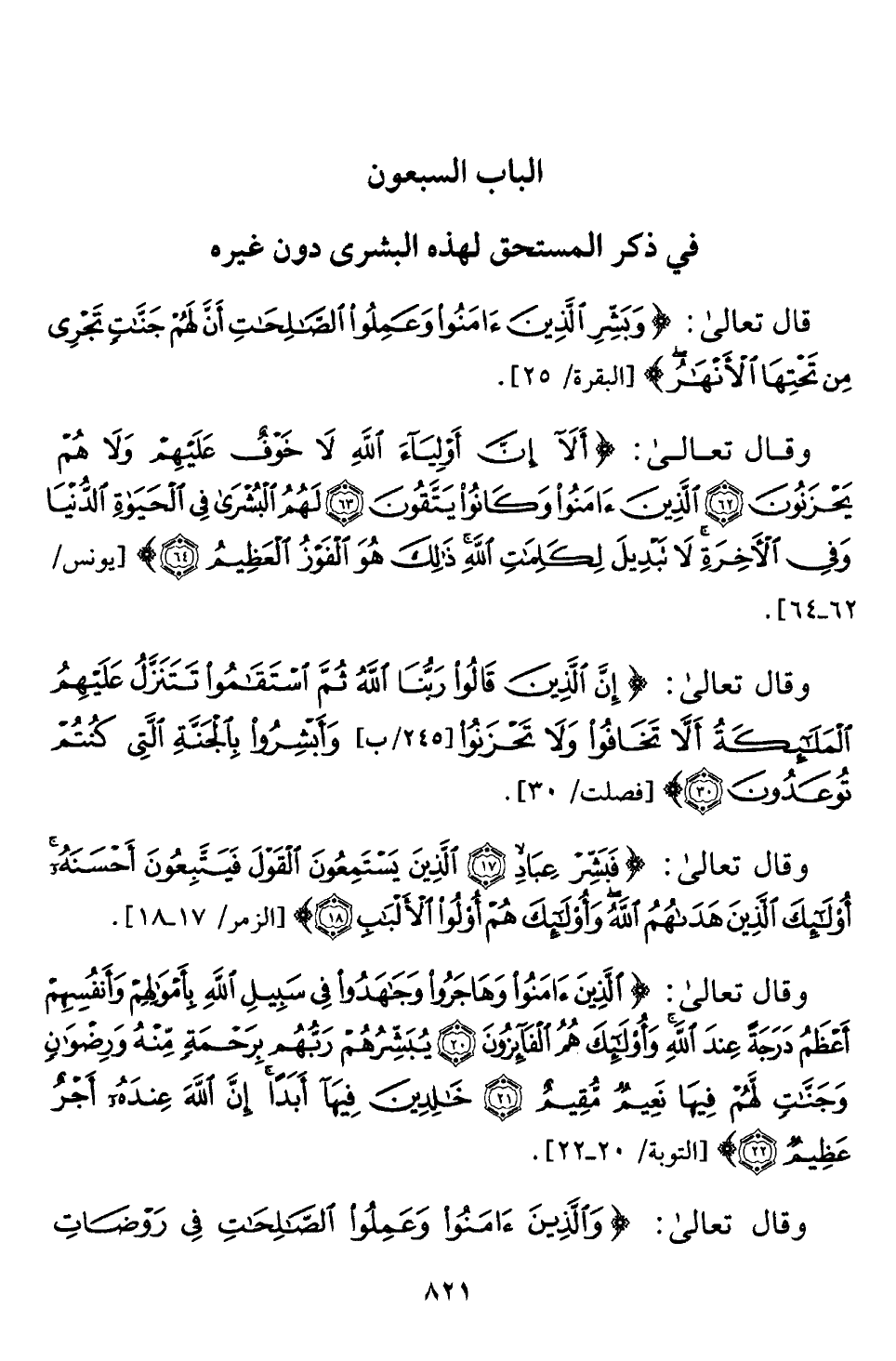 الباب السبعون: في ذكر المستحق لهذه البشرى دون غيره