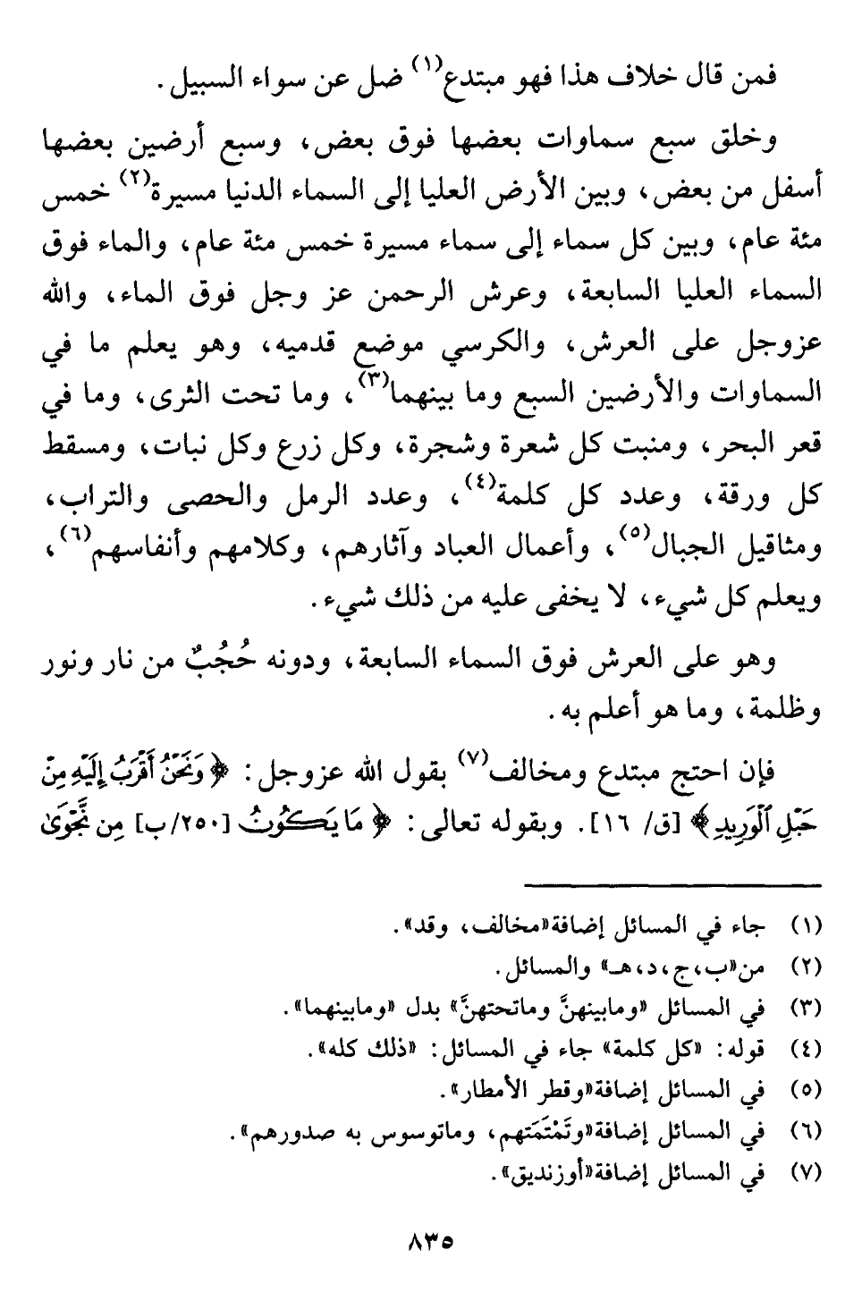(¬٣) في المسائل "وما بينهنَّ وما تحتهنَّ" بدل "وما بينهما".
