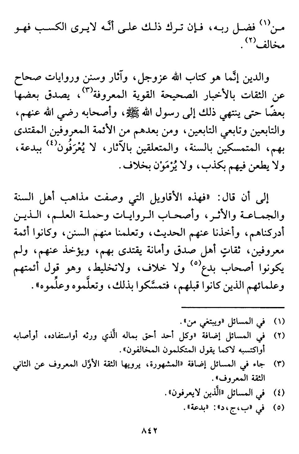 (¬٢) في المسائل إضافة "وكل أحد أحق بماله الَّذي ورثه أو استفاده، أو أصابه أو اكتسبه لا كما يقول المتكلمون المخالفون".