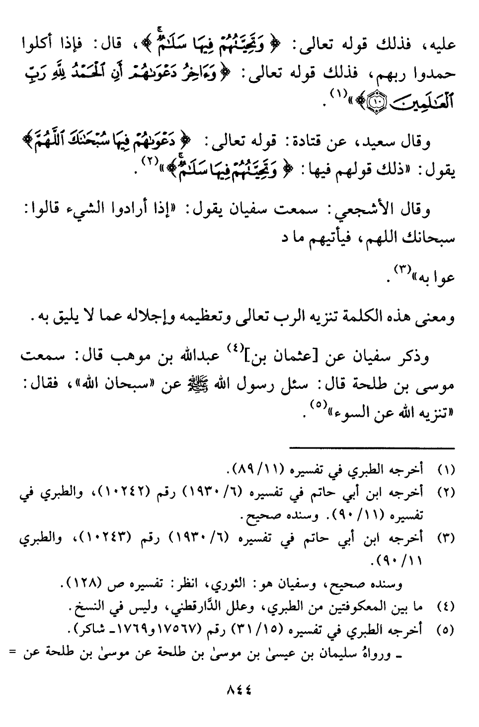 وذكر سفيان عن [عثمان بن] (¬٤) عبد اللَّه بن موهب قال: سمعت موسى بن طلحة قال: سئل رسول اللَّه -صلى اللَّه عليه وسلم- عن "سبحان اللَّه"، فقال: "تنزيه اللَّه عن السوء" (¬٥) .