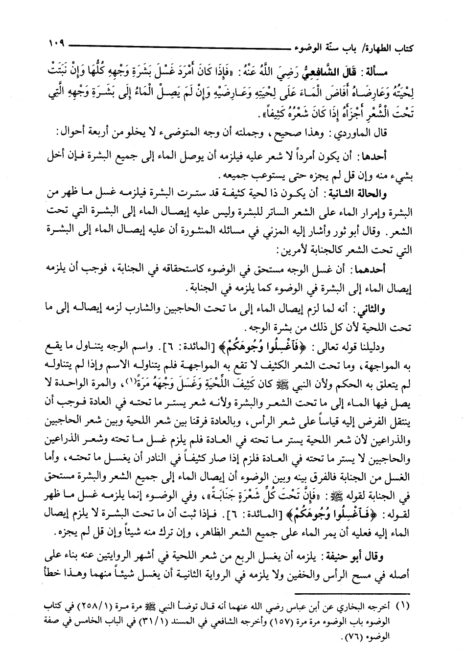 قال الماوردي: وهذا صحيح، وجملته أن وجه الْمُتَوَضِّئِ لَا يَخْلُو مِنْ أَرْبَعَةِ أَحْوَالٍ:
