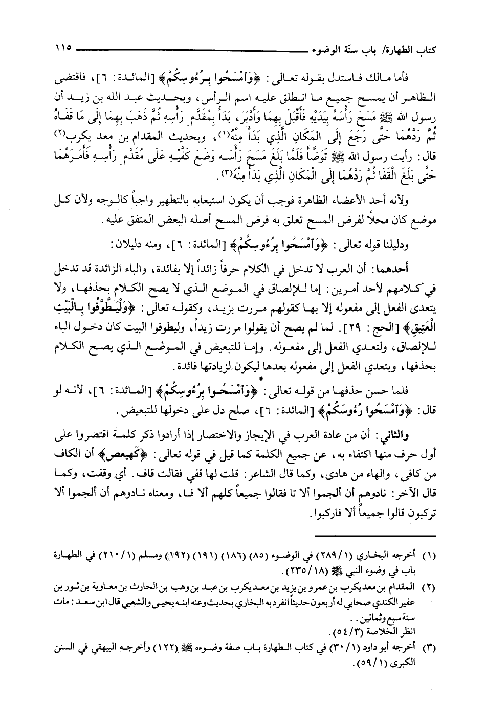 فَلَمَّا حَسُنَ حَذْفُهَا مِنْ قَوْله تَعَالَى: {وَامْسَحُوا بِرُءُوسِكُمْ} [المائدة: 6] ، لِأَنَّهُ لَوْ قَالَ: {وامسحوا رءوسكم} [المائدة: 6] ، صَلَحَ دَلَّ عَلَى دُخُولِهَا لِلتَّبْعِيضِ.