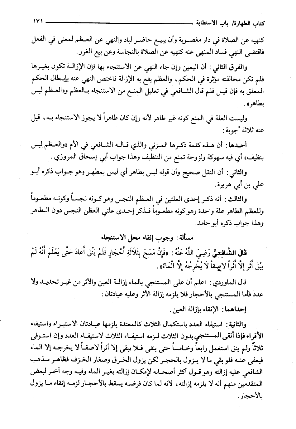 (مَسْأَلَةٌ: وُجُوبُ إِنْقَاءِ مَحَلِّ الِاسْتِنْجَاءِ) .