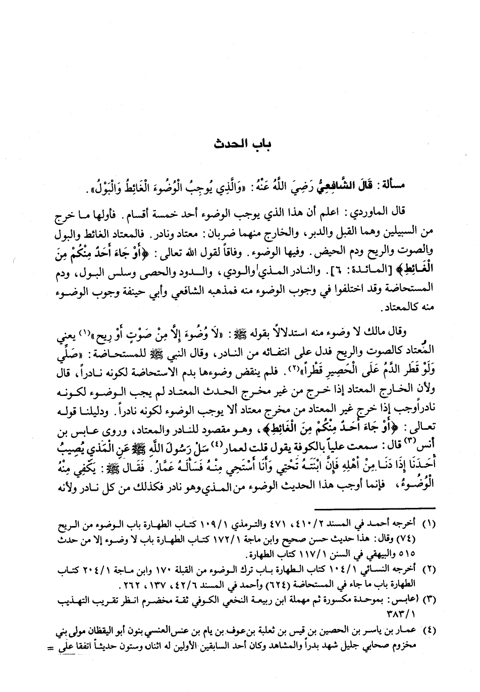 : قال الشافعي رضي الله عنه: " وَالَّذِي يُوجِبُ الْوُضُوءَ الْغَائِطُ وَالْبَوْلُ ".