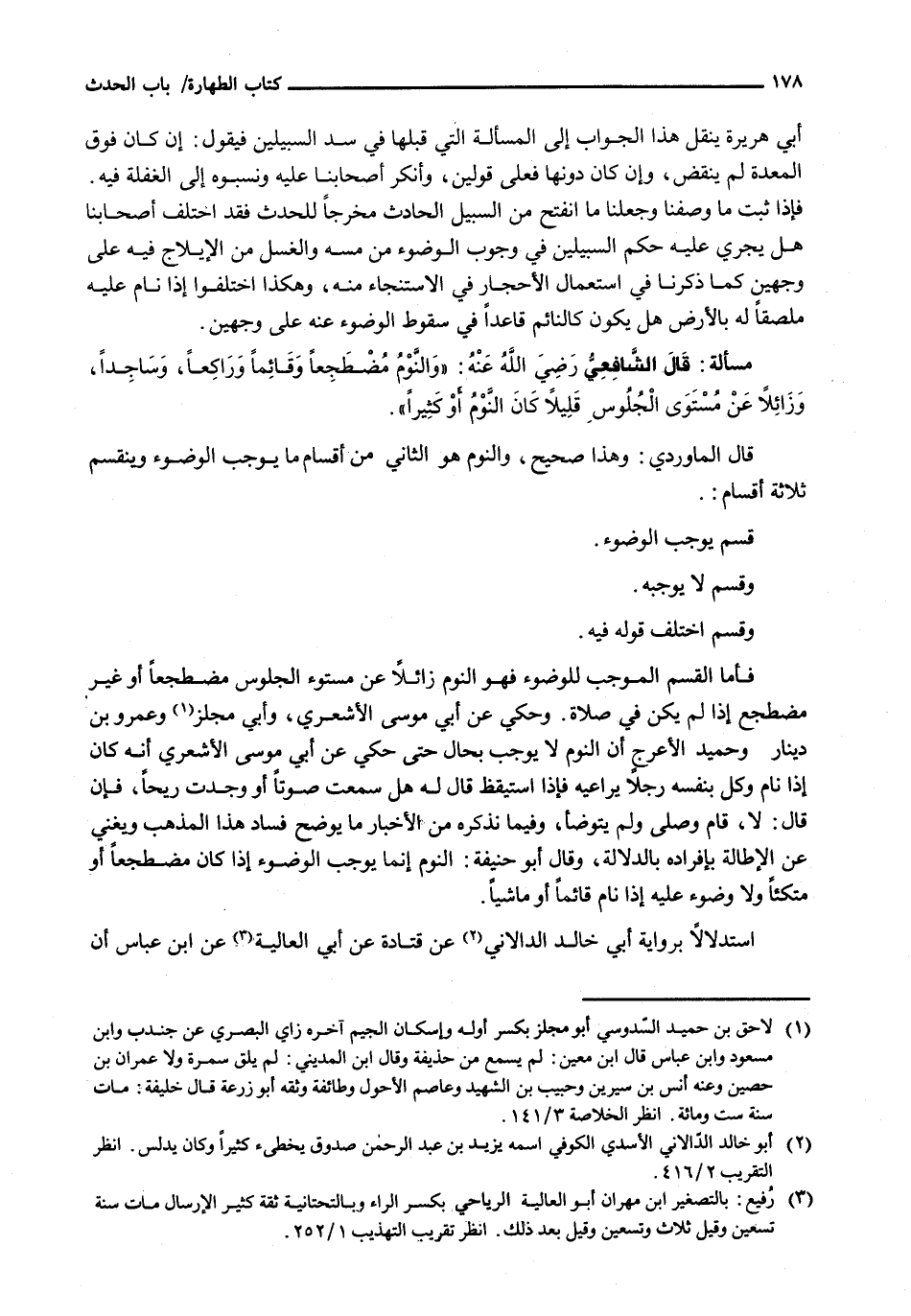 قَالَ الْمَاوَرْدِيُّ: وَهَذَا صَحِيحٌ، وَالنَّوْمُ هُوَ الثَّانِي مِنْ أَقْسَامِ مَا يُوجِبُ الْوُضُوءَ وَيَنْقَسِمُ ثَلَاثَةَ أَقْسَامٍ: