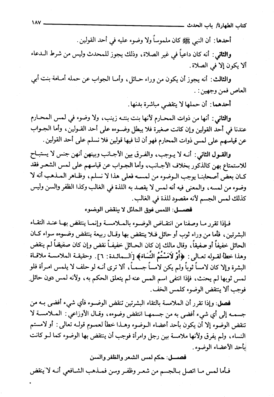 (فَصْلٌ: اللَّمْسُ فَوْقَ الْحَائِلِ لا ينقض الوضوء)