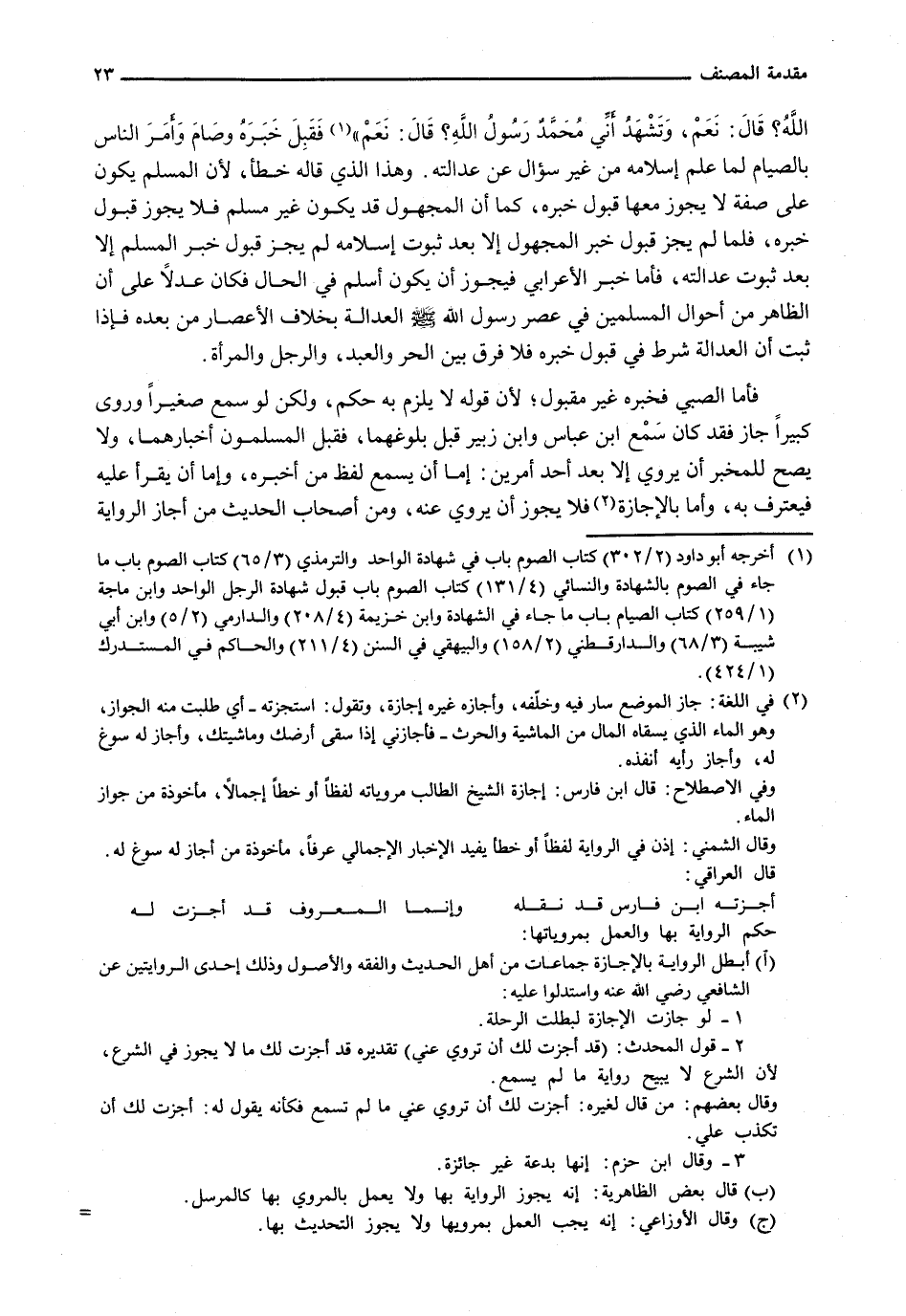 فَأَمَّا الصَّبِيُّ فَخَبَرُهُ غَيْرُ مَقْبُولٍ؛ لِأَنَّ قَوْلَهُ لَا يَلْزَمُ بِهِ حُكْمٌ، وَلَكِنْ لَوْ سَمِعَ صَغِيرًا وَرَوَى كَبِيرًا جَازَ فَقَدْ كَانَ سَمْعُ ابْنِ عباس وابن زبير قَبْلَ بُلُوغِهِمَا، فَقَبِلَ الْمُسْلِمُونَ أَخْبَارَهُمَا، وَلَا يَصِحُّ لِلْمُخْبِرِ أَنْ يَرْوِيَ إِلَّا بَعْدَ أَحَدِ أَمْرَيْنِ: إِمَّا أَنْ يَسْمَعَ لَفْظَ مَنْ أَخْبَرَهُ، وَإِمَّا أَنْ يَقْرَأَ عَلَيْهِ فَيَعْتَرِفَ بِهِ، وَإِمَّا بِالْإِجَازَةِ فَلَا يَجُوزُ أَنْ يُرْوَى عَنْهُ، وَمِنْ أَصْحَابِ الْحَدِيثِ مَنْ أَجَازَ الرِّوَايَةَ