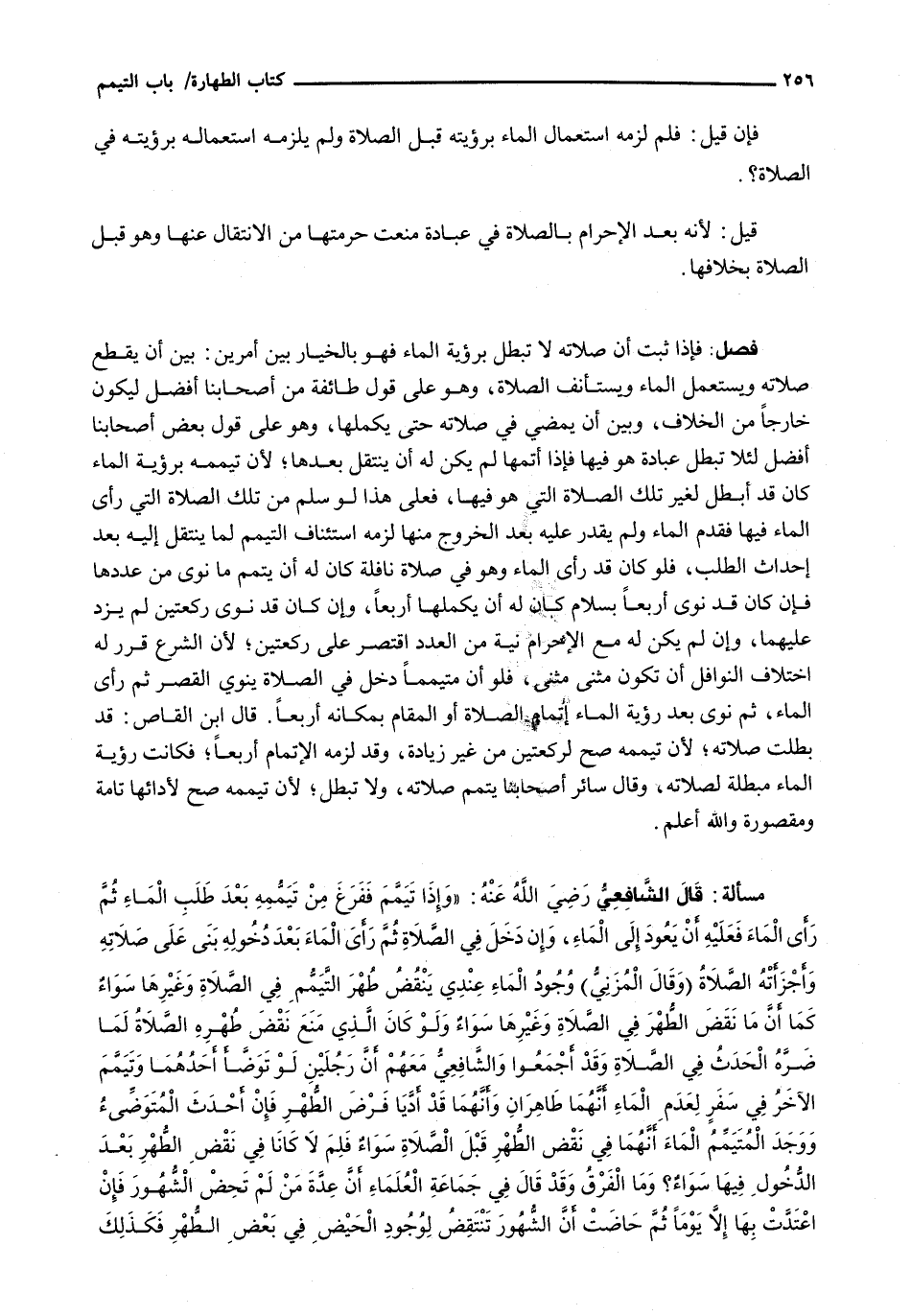 : قال الشافعي رضي الله عنه: " وَإِذَا تَيَمَّمَ فَفَرَغَ مِنْ تَيَمُّمِهِ بَعْدَ طَلَبِ الْمَاءِ ثُمَّ رَأَى الْمَاءَ فَعَلَيْهِ أَنْ يَعُودَ إلى الماء، وإن دَخَلَ فِي الصَّلَاةِ ثُمَّ رَأَى الْمَاءَ بَعْدَ دخوله بنى على صلاته وأجزأته الصلاة (وقال المزني) وجود الماء عندي ينقض طهر التيمم في الصلاة وغيرها سواء كما أن ما نقض الطهر في الصلاة وغيرها سواء ولو كان الذي منع نقض طهره الصلاة لما ضره الحدث في الصلاة وقد أجمعوا والشافعي معهم أن رجلين لو توضأ أحدهما وتيمم الآخر في سفر لعدم الماء أنهما طاهران وأنهما قد أديا فرض الطهر فإن أحدث المتوضئ ووجد المتيمم الماء أنهما في نقض الطهر قبل الصلاة سواءٌ فلم لا كانا في نقض الطهر بعد الدخول فيها سواء؟ وما الفرق وقد قال في جماعة العلماء أن عدة من لم تحض الشهور فإن اعتدت بها إلا يوماً ثم حاضت أن الشهور تنتقض لوجود الحيض في بعض الطهر فكذلك