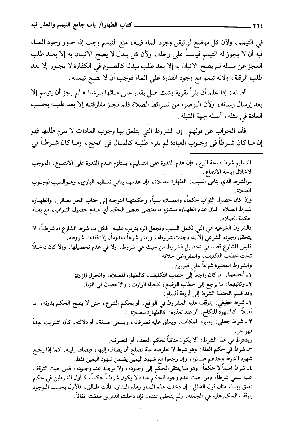 فَأَمَّا الْجَوَابُ عَنْ قَوْلِهِمْ: إِنَّ الشُّرُوطَ الَّتِي يَتَعَلَّقُ بِهَا وُجُوبُ العادات لَا يَلْزَمُ طَلَبُهَا فَهُوَ إِنَّ مَا كَانَ شَرْطًا فِي وُجُوبِ الْعِبَادَةِ لَمْ يَلْزَمْ طَلَبُهُ كَالْمَالِ فِي الْحَجِّ، وَمَا كَانَ شَرْطًا فِي