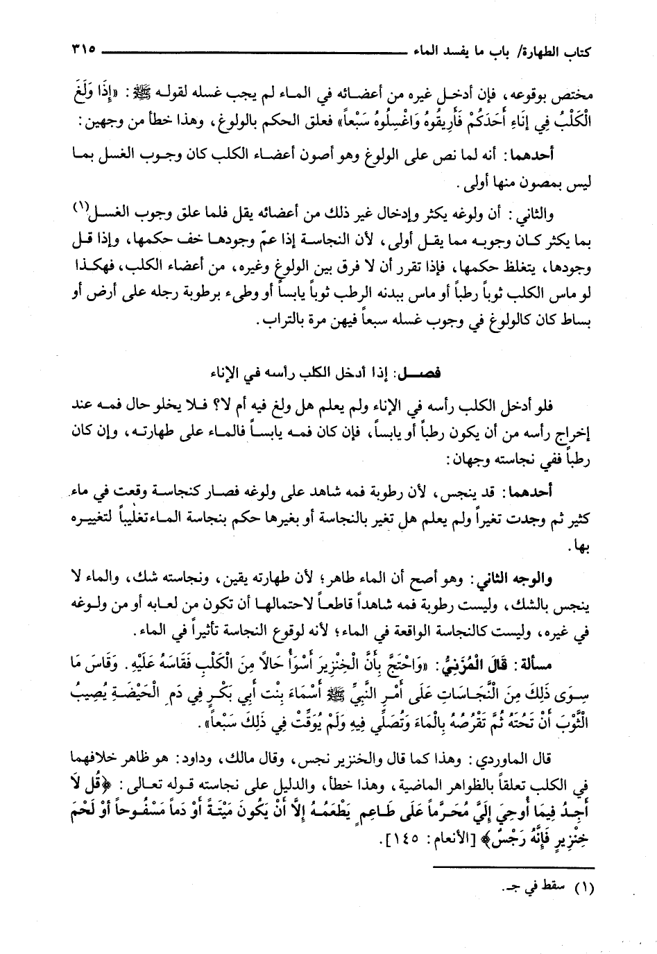 أَحَدُهُمَا: قَدْ يُنَجِّسُ، لِأَنَّ رُطُوبَةَ فَمِهِ شَاهِدٌ عَلَى وُلُوغِهِ فَصَارَ كَنَجَاسَةٍ وَقَعَتْ فِي مَاءٍ كَثِيرٍ ثُمَّ وَجَدَتْ تَغَيُّرًا وَلَمْ يُعْلَمْ هَلْ تَغَيَّرَ بِالنَّجَاسَةِ أَوْ بِغَيْرِهَا حُكِمَ بِنَجَاسَةِ الْمَاءِ تَغْلِيبًا لِتَغْيِيرِهِ بِهَا.