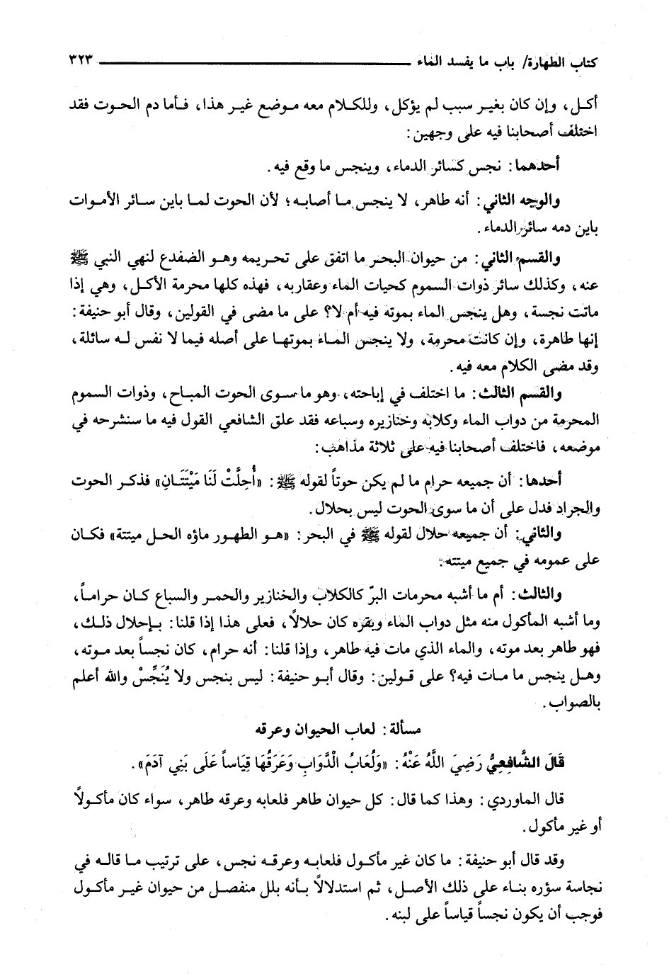 (مَسْأَلَةٌ: لُعَابُ الْحَيَوَانِ وعرقه)