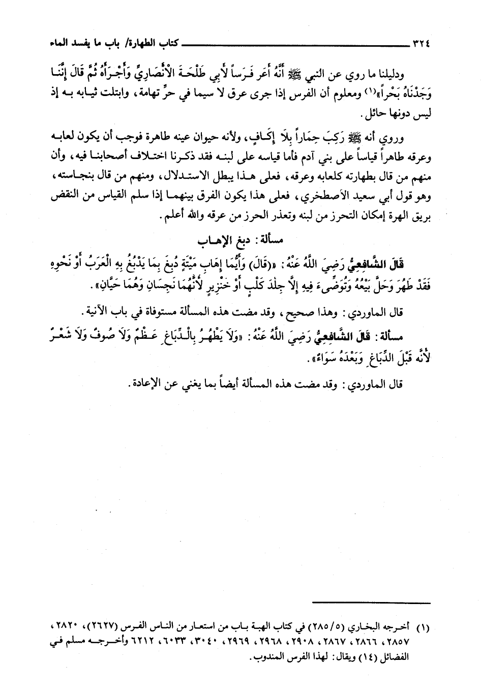 قال الشافعي رضي الله عنه: (قَالَ) وَأَيُّمَا إِهَابِ ميتةٍ دُبِغَ بِمَا يَدْبُغُ بِهِ الْعَرَبُ أَوْ نَحْوِهِ فَقَدْ طَهُرَ وَحَلَّ بَيْعُهُ وَتُوُضِئَ فِيهِ إِلَّا جِلْدَ كلبٍ أَوْ خنزيرٍ لِأَنَّهُمَا نَجِسَانِ وَهُمَا حَيَّانِ ".