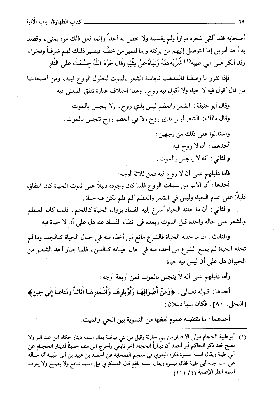 والثاني: أن ما حلته الْحَيَاةُ أَسْرَعَ إِلَيْهِ الْفَسَادُ بِزَوَالِ الْحَيَاةِ كَاللَّحْمِ، فلما كان العظم والشعر على حاله وَاحِدَةٍ قَبْلَ الْمَوْتِ وَبَعْدَهُ فِي انْتِفَاءِ الْفَسَادِ عَنْهُ دَلَّ عَلَى أَنْ لَا حَيَاةَ فِيهِ.
