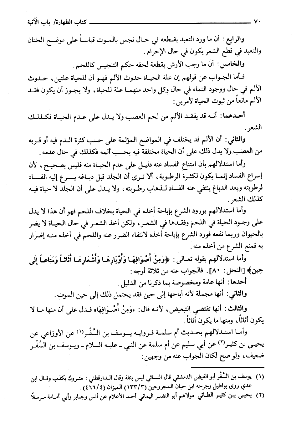 والرابع: أن ما ورد التَّعَبُّدُ بِقَطْعِهِ فِي حَالٍ نَجِسٍ بِالْمَوْتِ قِيَاسًا على موضع الختان والتعبد في قطع الشَّعْرِ يَكُونُ فِي حَالِ الْإِحْرَامِ.
