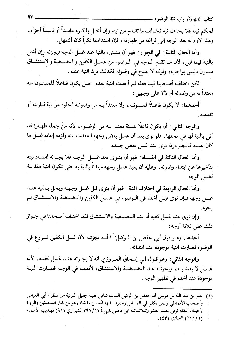 أَحَدُهَا: وَهُوَ قَوْلُ أَبِي حَفْصِ بْنِ الْوَكِيلِ أَنَّهُ يُجْزِئُهُ لِأَنَّ غَسْلَ الْكَفَّيْنِ شُرُوعٌ فِي الْوُضُوءِ فَصَارَتِ النِّيَّةُ مَوْجُودَةً عِنْدَ ابْتِدَائِهِ.