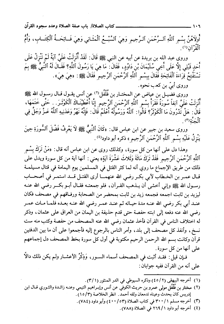 وَرَوَى سَعِيدُ بْنُ جُبَيْرٍ عَنِ ابْنِ عَبَّاسٍ قَالَ: " كَانَ النَّبِيُّ - صَلَّى اللَّهُ عَلَيْهِ وَسَلَّم َ - لَا يَعْرِفُ فَضْلَ السُّورَةِ حِينَ يَنْزِلُ عَلَيْهِ بِسْمِ اللَّهِ الرَّحْمَنِ الرَّحِيمِ " ذَكَرَهُ أَبُو دَاوُدَ