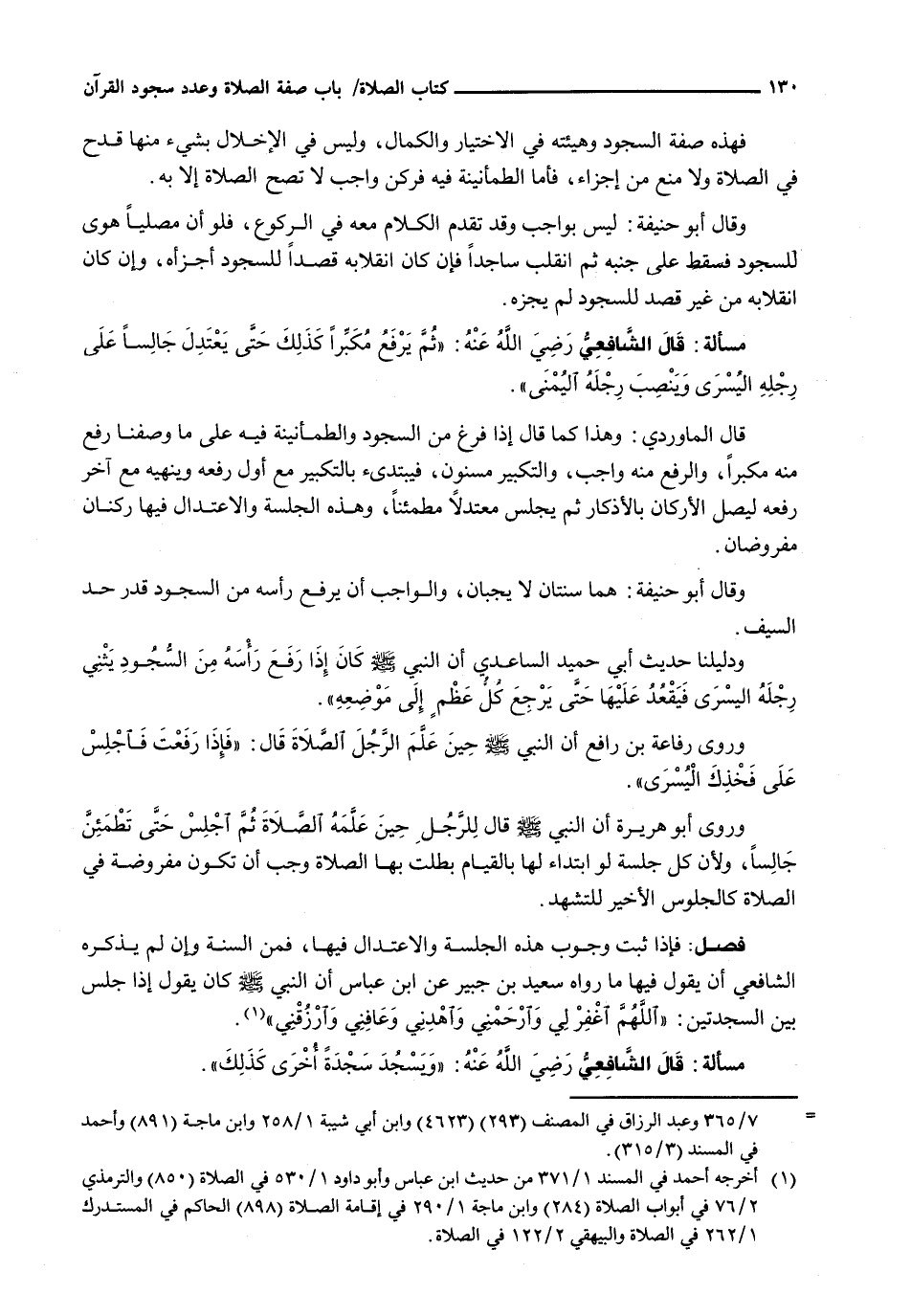 : قال الشافعي رضي الله عنه: " ثُمَّ يَرْفَعُ مُكَبِّرًا كَذَلِكَ حَتَّى يَعْتَدِلَ جَالِسًا عَلَى رِجْلِهِ الْيُسْرَى وَيَنْصِبَ رِجْلَهُ الْيُمْنَى "