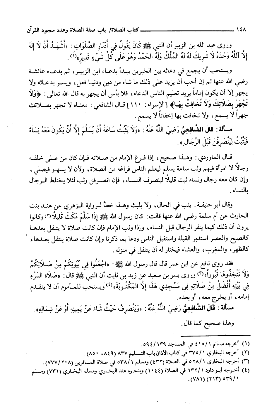 : قَالَ الشافعي رضي الله عنه: " وَلَا يَثْبُتُ سَاعَةَ أَنْ يُسَلِّمَ إِلَّا أَنْ يَكُونَ مَعَهُ نِسَاءٌ فَيَثْبُتُ لِيَنْصَرِفْنَ قَبْلَ الرِّجَالِ "