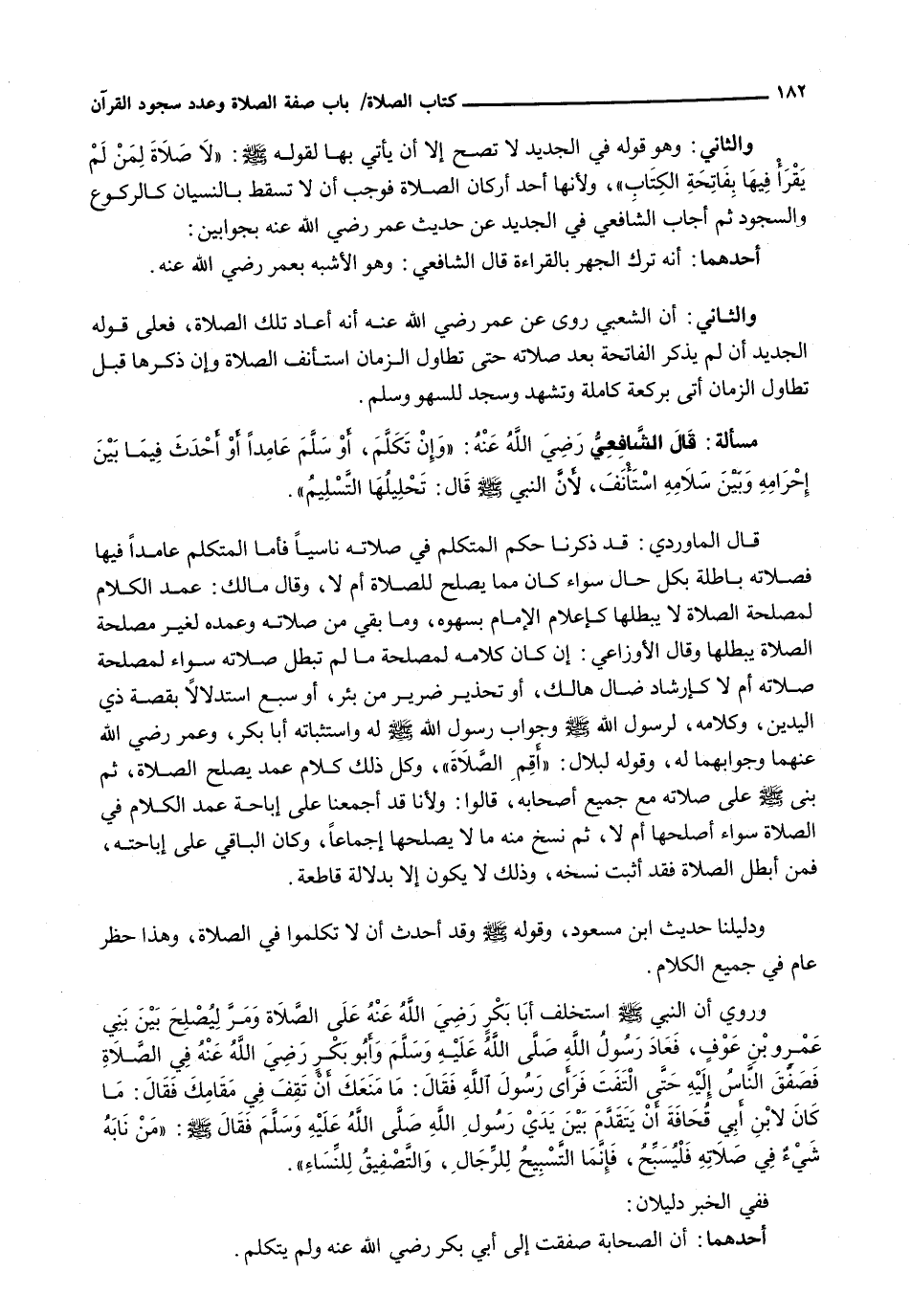 وَدَلِيلُنَا حَدِيثُ ابْنِ مَسْعُودٍ، وَقَوْلُهُ - صَلَّى اللَّهُ عَلَيْهِ وَسَلَّم َ - وَقَدْ أَحْدَثَ أَنْ لَا تَكَلَّمُوا فِي الصَّلَاةِ، وَهَذَا حَظْرٌ عَامٌّ فِي جَمِيعِ الْكَلَامِ