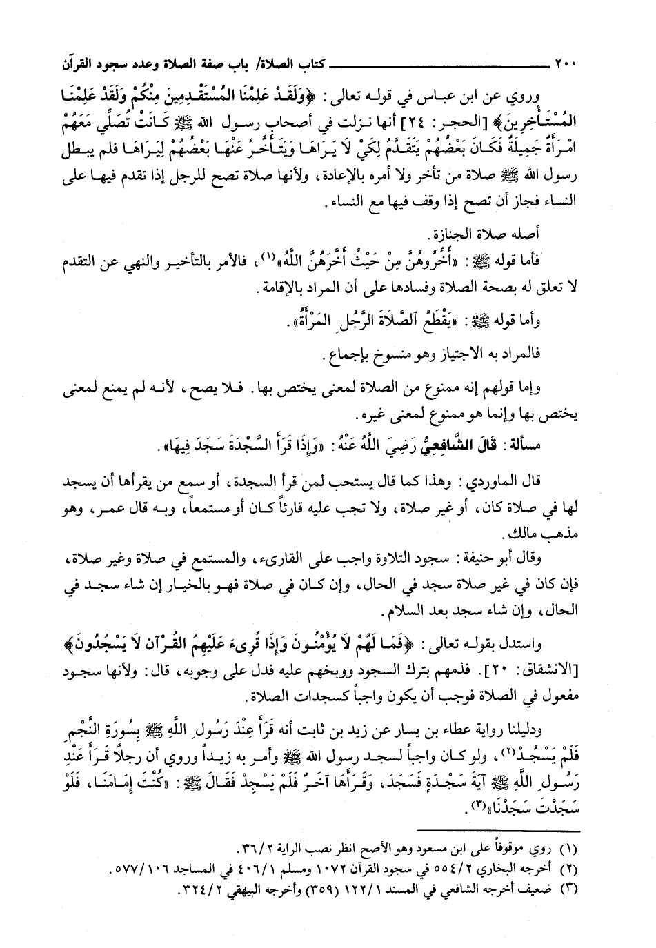 قَالَ الْمَاوَرْدِيُّ: وَهَذَا كَمَا قَالَ يُسْتَحَبُّ لِمَنْ قَرَأَ السَّجْدَةَ، أو سمع من يقرأها أَنْ يَسْجُدَ لَهَا فِي صَلَاةٍ كَانَ، أَوْ غَيْرِ صَلَاةٍ، وَلَا تَجِبُ عَلَيْهِ قَارِئًا كَانَ أَوْ مُسْتَمِعًا، وَبِهِ قَالَ عُمَرُ، وَهُوَ مَذْهَبُ مَالِكٍ