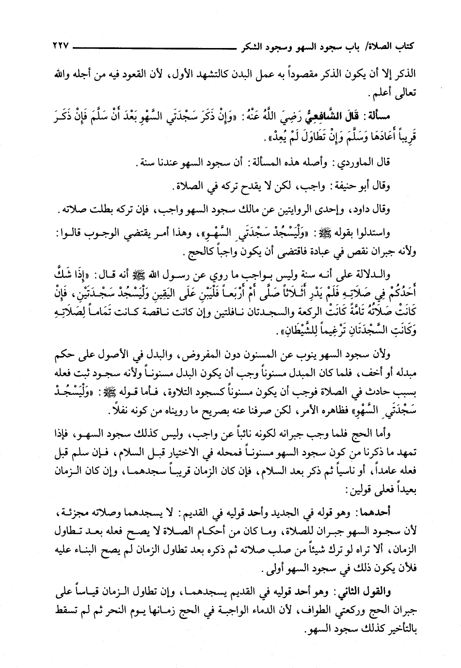 قال الماوردي: وأصله هَذِهِ الْمَسْأَلَةُ: أَنَّ سُجُودَ السَّهْوِ عِنْدَنَا سُنَّةٌ