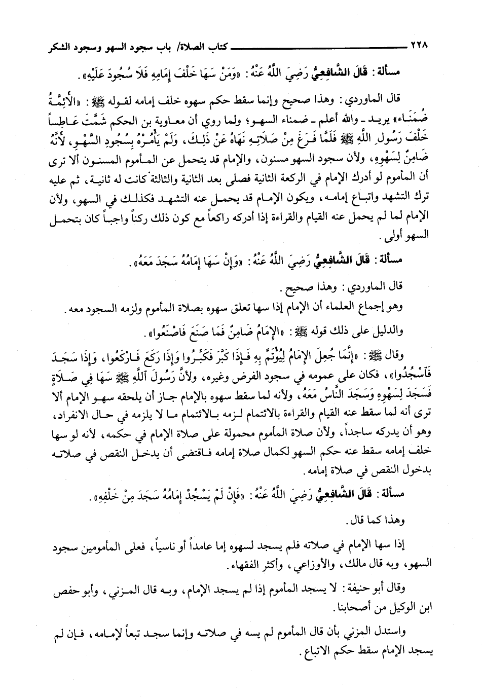 : قال الشافعي رضي الله عنه: " وَمَنْ سَهَا خَلْفَ إِمَامِهِ فَلَا سُجُودَ عَلَيْهِ "
