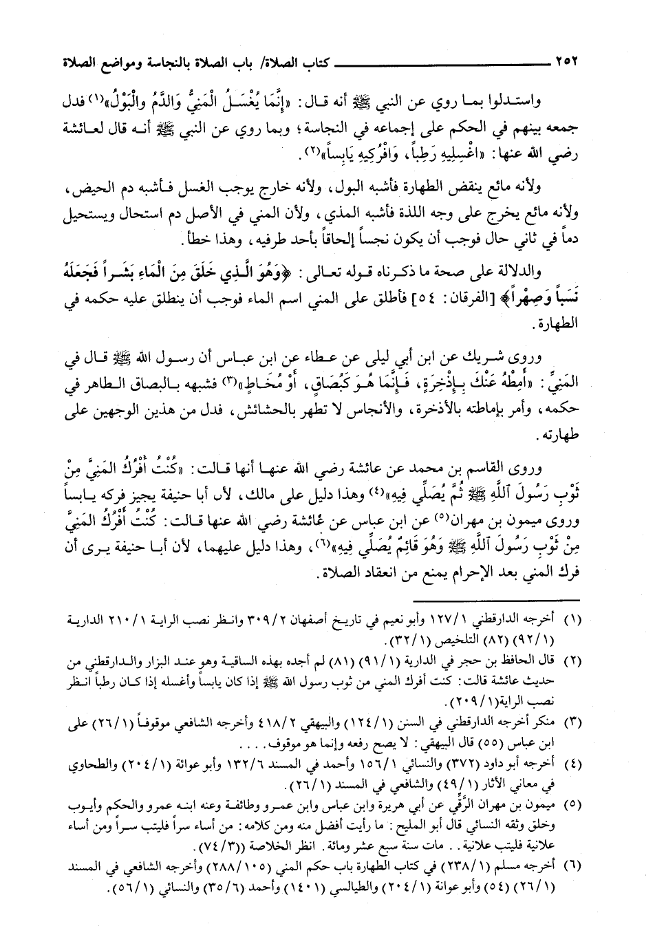 وَالدَّلَالَةُ عَلَى صِحَّةِ مَا ذَكَرْنَاهُ قَوْله تَعَالَى: {وَهُوَ الَّذِي خَلَقَ مِنَ الْمَاءِ بَشَرًا فَجَعَلَهُ نَسَبًا وَصِهْرًا} [الفرقان: 54] فَأَطْلَقَ عَلَى الْمَنِيِّ اسْمَ الْمَاءِ فَوَجَبَ أَنْ يَنْطَلِقَ عَلَيْهِ حُكْمُهُ فِي الطَّهَارَةِ